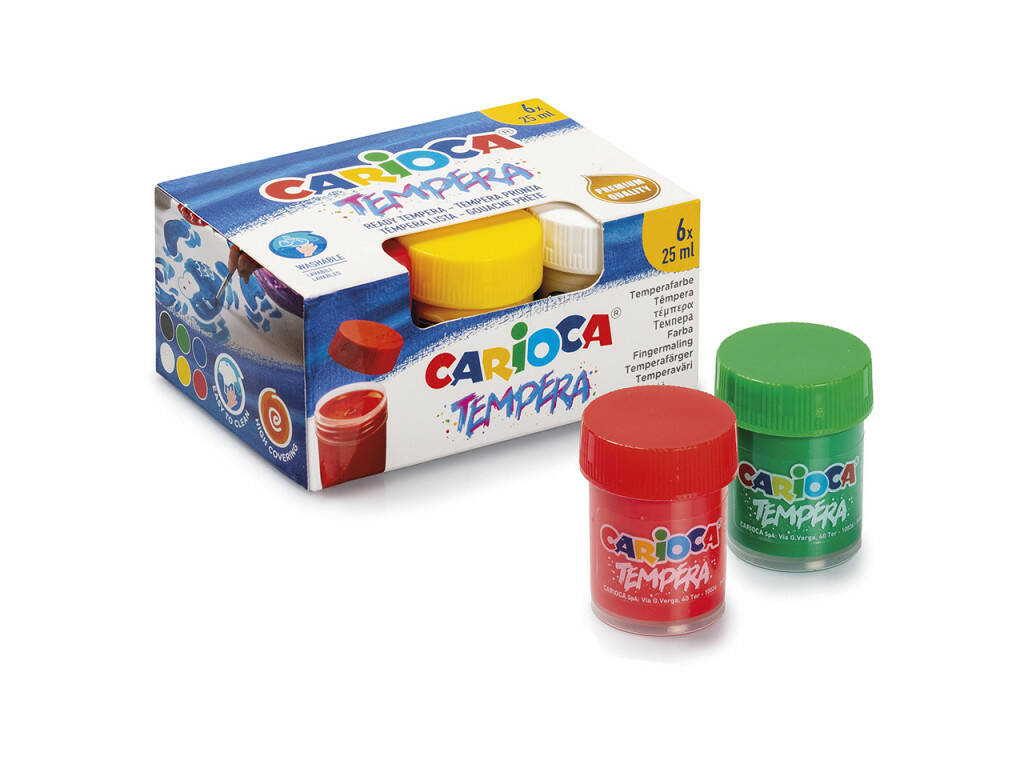 Pack 6 Tempera lavable de qualité supérieure 25 ml. Carioca 40422