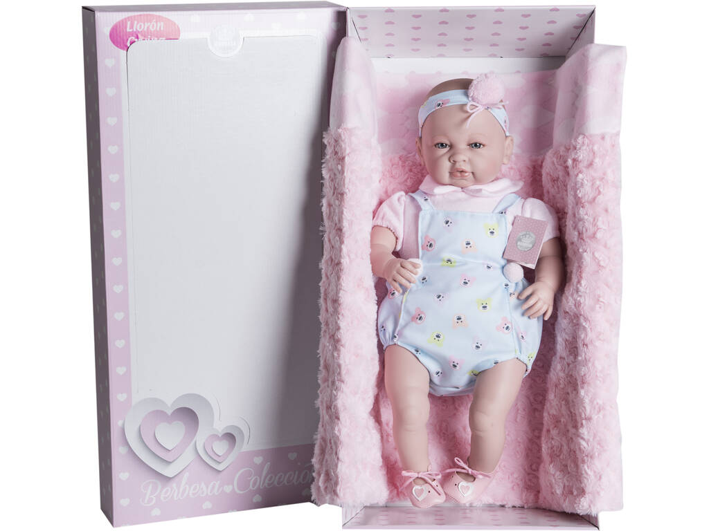Sara New Born Doll 50 cm. Bavoir bleu Llorona Bavoir bleu Couverture rose Berbesa 5212